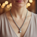 This necklace has a calm, grounded feel. The neutral tones make it incredibly versatile, easy to pair with everyday outfits while still offering visual interest and depth. The pendant catches light quietly rather than flashing, giving the piece an understated elegance that feels intentional and refined.