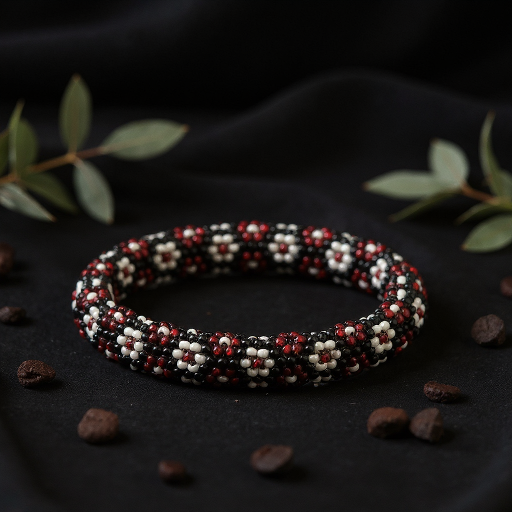 Say hello to “Cherry Bomb Twist” — a high-contrast, bold, and beautifully hand-crocheted bracelet made for standout style. Woven with precision using red, white, and black seed beads, this spiraled rope bracelet features floral-like pops of white against a dark, dramatic backdrop. It’s finished with a sleek magnetic clasp for easy, fuss-free wear. Whether you're going for rock-chic, sporty flair, or simply want to add a bold handmade piece to your look, Cherrybomb Twist delivers attitude and artistry in equal measure.