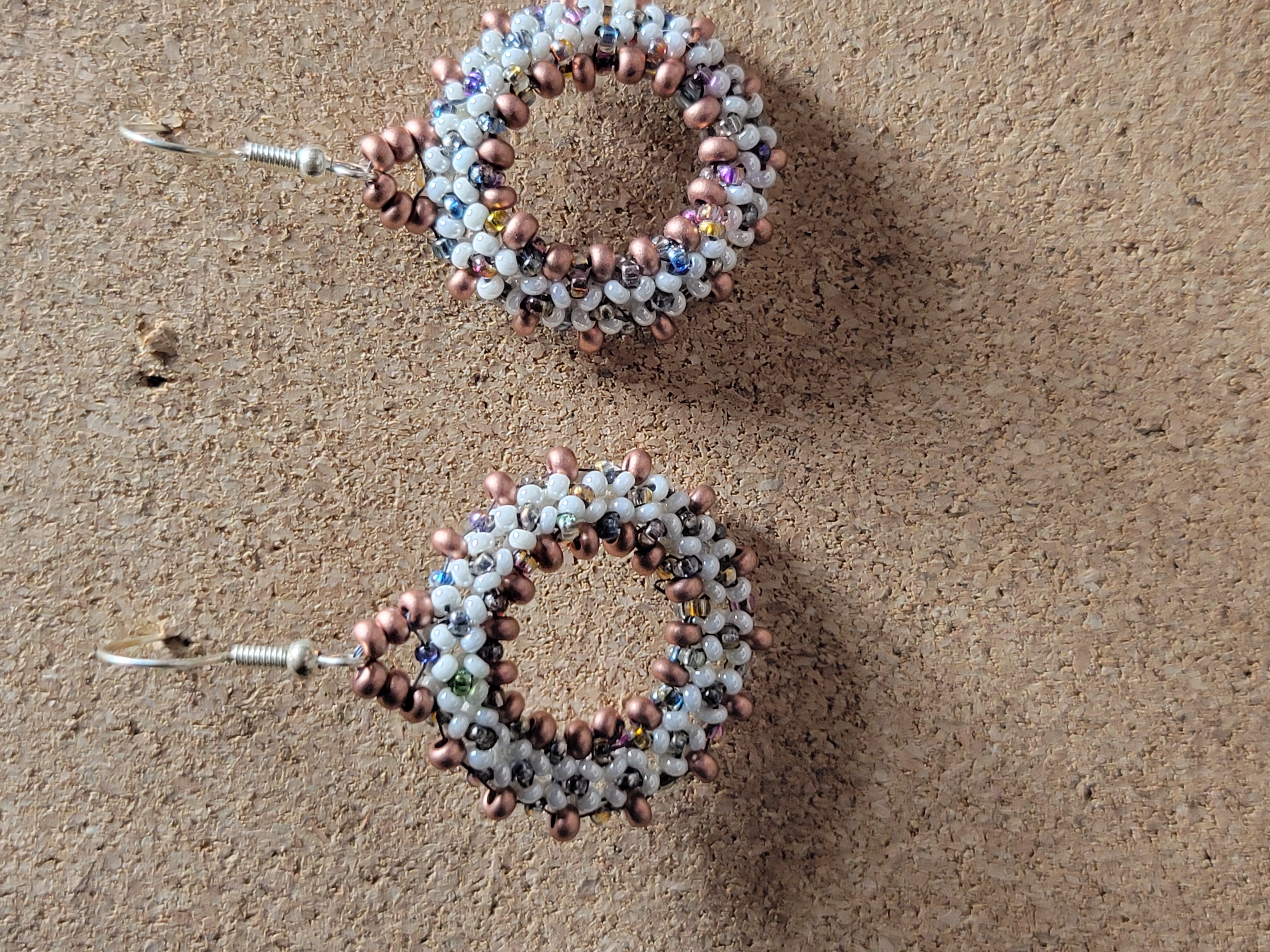 These copper and pearl-inspired hoops blend matte metallics with soft white and iridescent glass beads for a look that’s bold without being loud. Lightweight and wearable, they bring just the right mix of character and polish to your everyday lineup—perfect for jeans, a tee, and a bit of attitude.