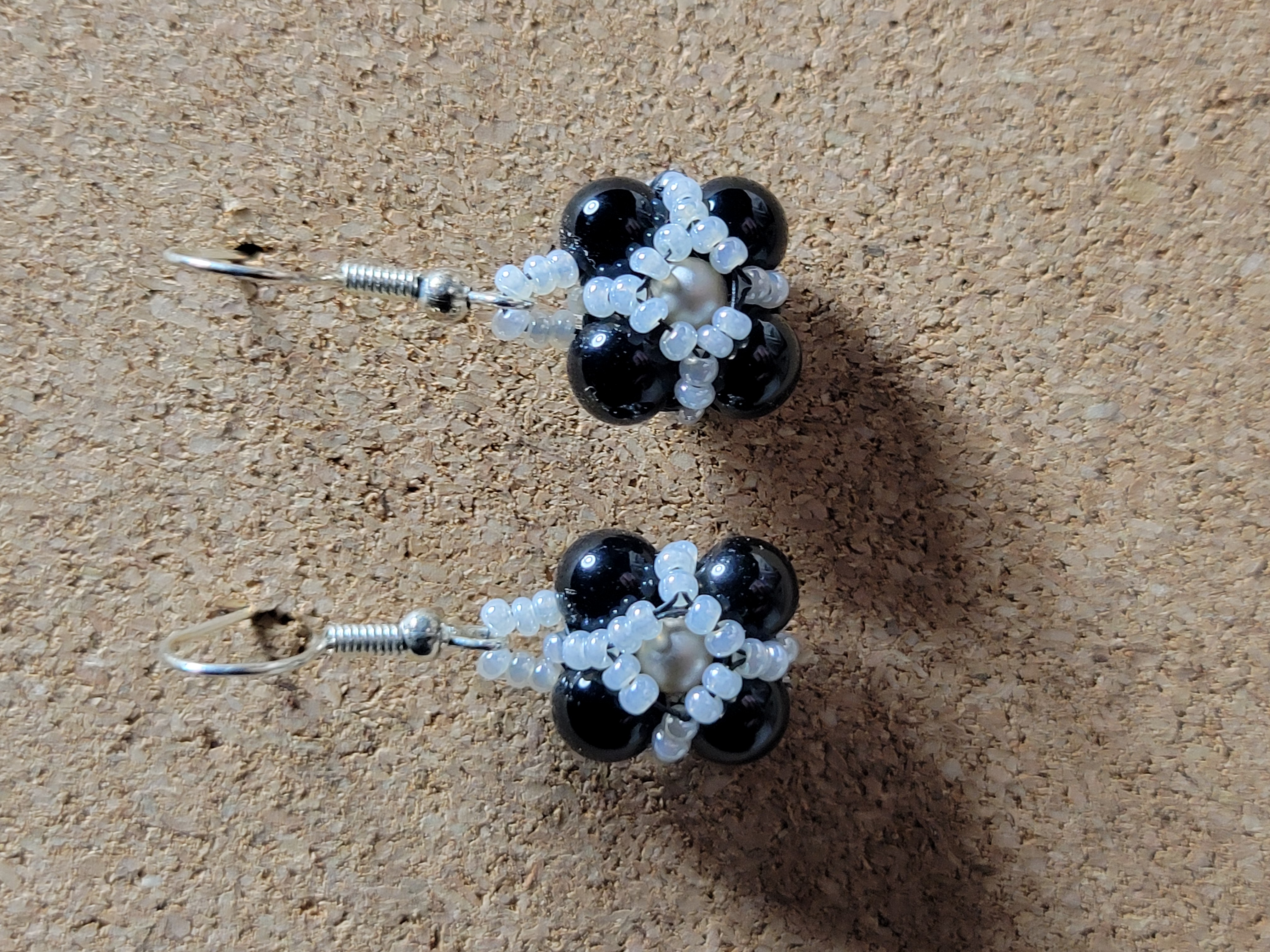 Elevate your evening look with these Midnight Orbit Earrings, a striking blend of elegance and bold contrast. These handcrafted earrings feature a captivating black-and-white beadwork design, forming a delicate petal-like shape that catches the light with every movement. Suspended from simple silver-toned hooks, they offer just the right amount of drama—perfect for cocktail parties, nights out, or adding a statement touch to your favorite black dress.