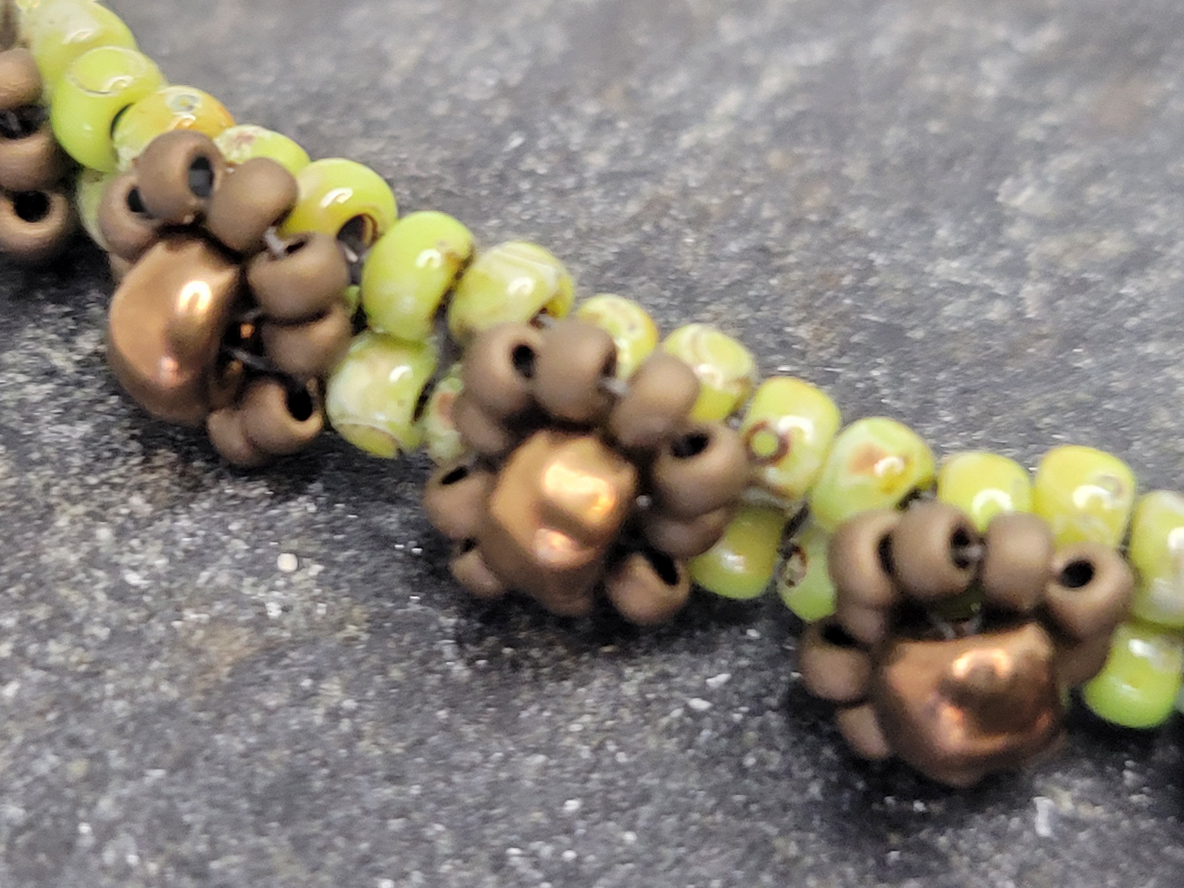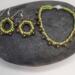 This handmade olive green jewelry set pairs a beaded bracelet with matching earrings, designed to feel earthy, balanced, and quietly distinctive. The color palette blends soft olive greens with deep bronze tones, creating a look that’s natural without being plain and detailed without feeling heavy.
