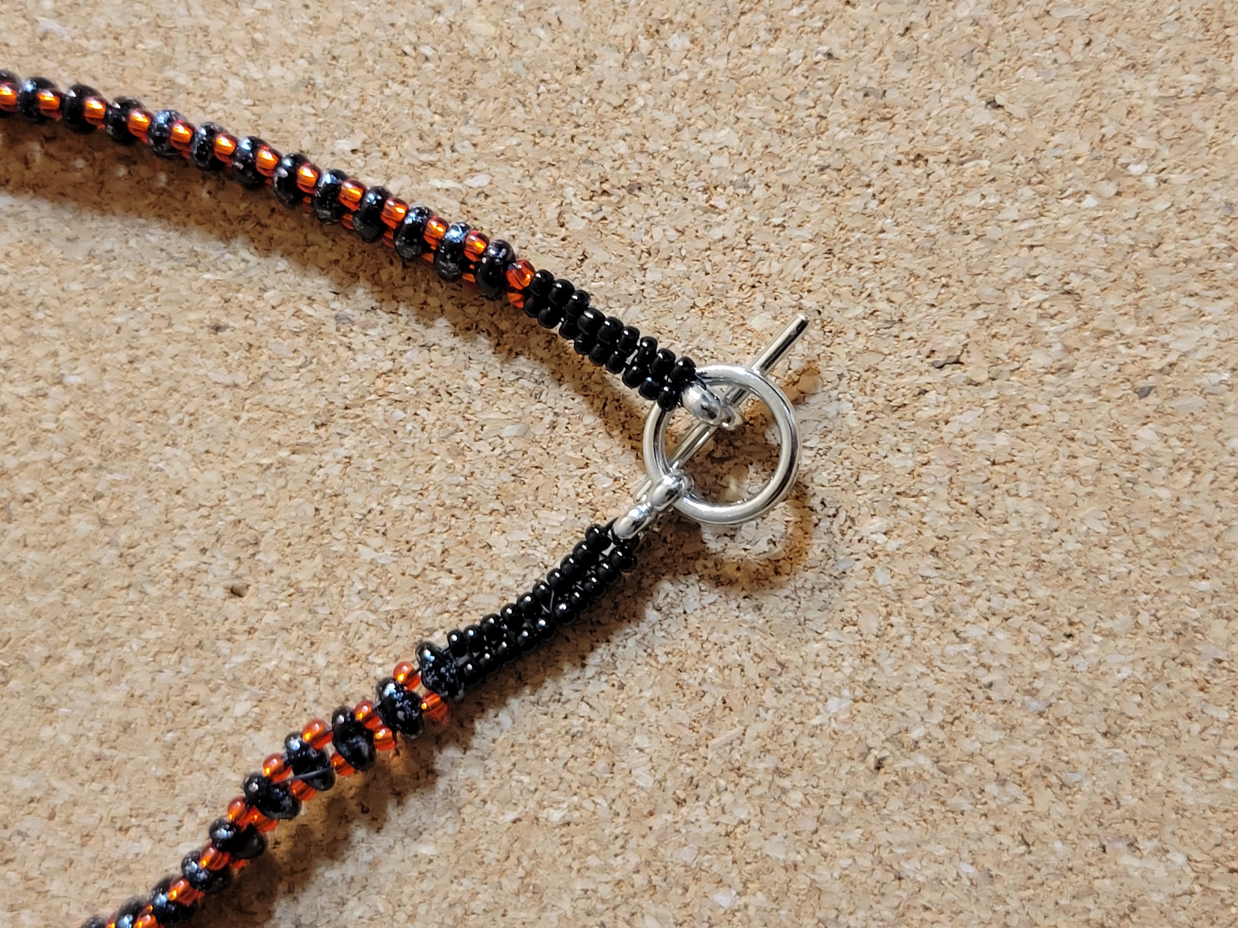 Materials: Glass seed beads, faceted crystal accents, nylon thread