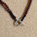 Handwoven from rich burnt orange and black glass beads, this pendant radiates an earthy, autumn-inspired glow. Its signature petal shape adds softness, while the color pairing keeps it modern and bold.