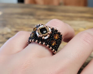 Allspice Beaded Ring | Handmade Beadwork Jewelry in Warm Tones