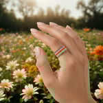 This cheerful striped peyote ring features bright summer hues — pink, orange, mint, and sky blue — stitched into a lightweight, flexible band that’s perfect for everyday wear or stacking with your favorites. It’s playful, comfortable, and full of warm-weather energy.