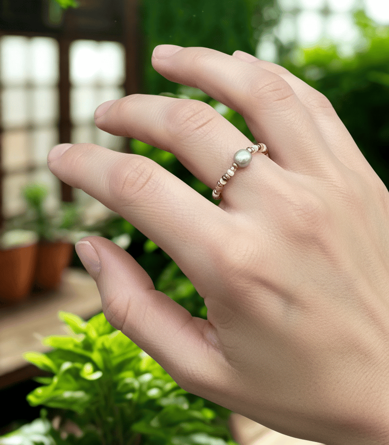 The Autumn Pearl Beaded Ring captures the soft glow of fall in a delicate design. A luminous pearl-style centerpiece is framed by warm amber, gold, and ivory beads, evoking the golden light and gentle richness of the season.